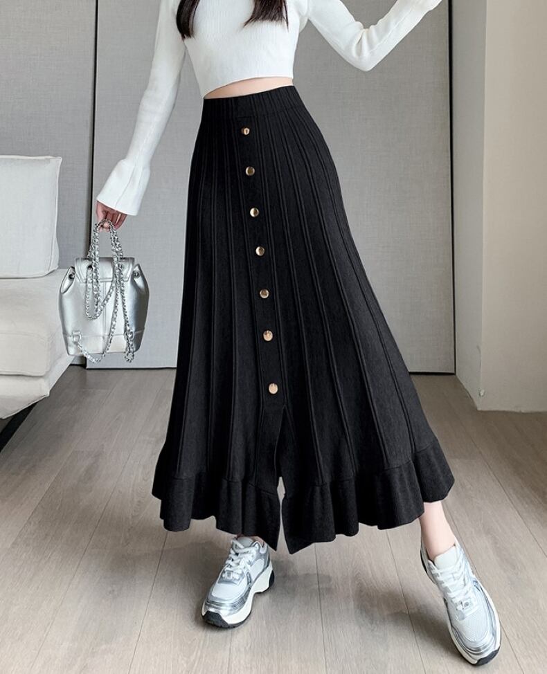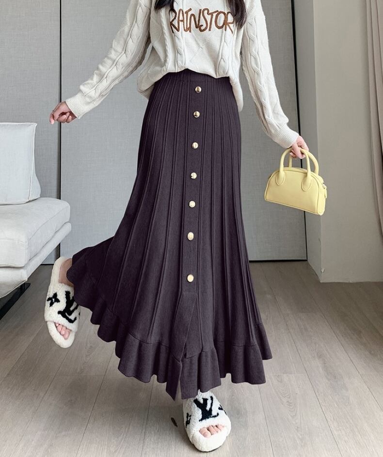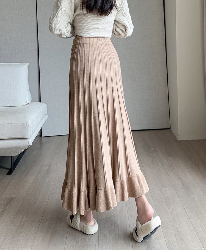 ニットスカート アンブレラスカート ウエストゴム ドレーププリーツスカート スカート ロングスカート Aライン スリット ニット 大人可愛い おしゃれ キュート 無地 春 秋 冬 レディース お出かけ 休日 旅行 普段使い 楽ちん 暖かい 新作 送料無料 フリーサイズ