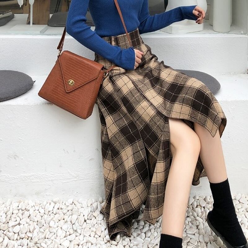 アシンメトリー チェックスカート スカート タータンチェック ロング 膝丈 ハイウエスト イレギュラーヘム サイドスリット フレア きれいめ カジュアル 大人 上品 おしゃれ エレガント チェック柄 春 秋 冬 レディース デート お出かけ 休日 旅行 普段使い ファッション スタイル 体系カバー 送料無料 S M L XL