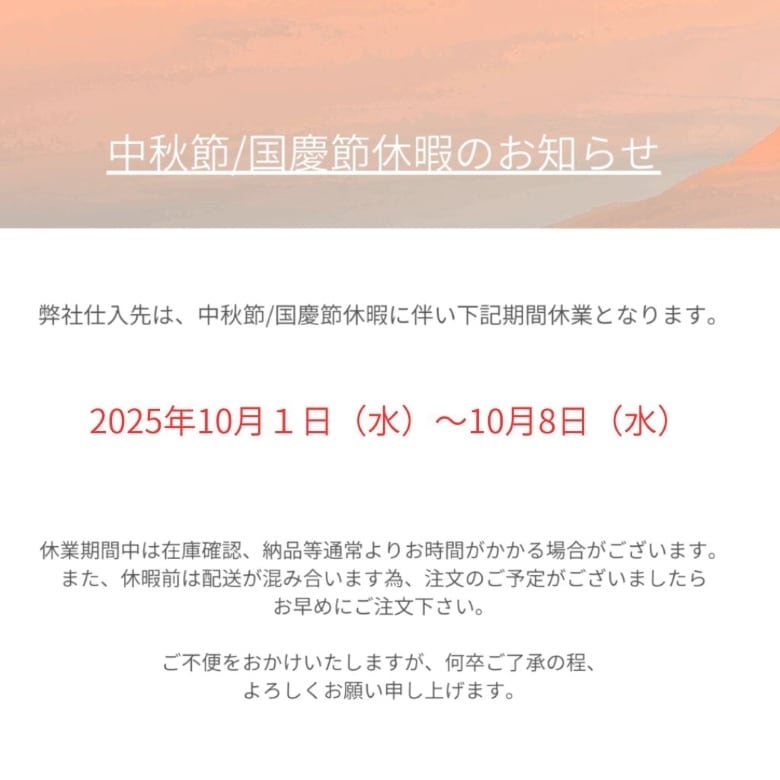 欠品や商品の不具合などにより、商品をお届けすることができず、ご注文をキャンセルさせていただく場合もございますのでご了承ください。