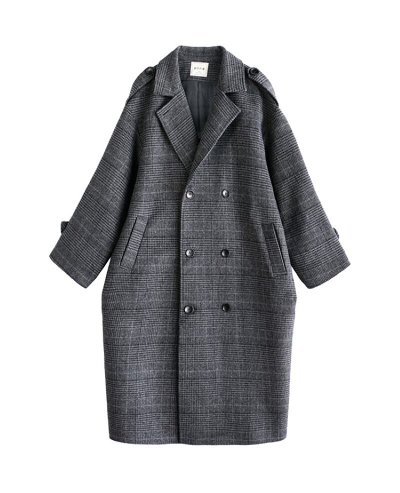 ジャケット コート アウター チェスターコート チェック 格子柄 グレンチェック ロング 長袖 ポケット 前開き シンプル カジュアル おしゃれ アジアン フォーマル 秋 冬 レディース 通勤 デート お出かけ 公園デビュー 旅行 普段使い 楽ちん 暖かい 防寒 体系カバー 送料無料 S M L XL 2XL ゆったり グレー