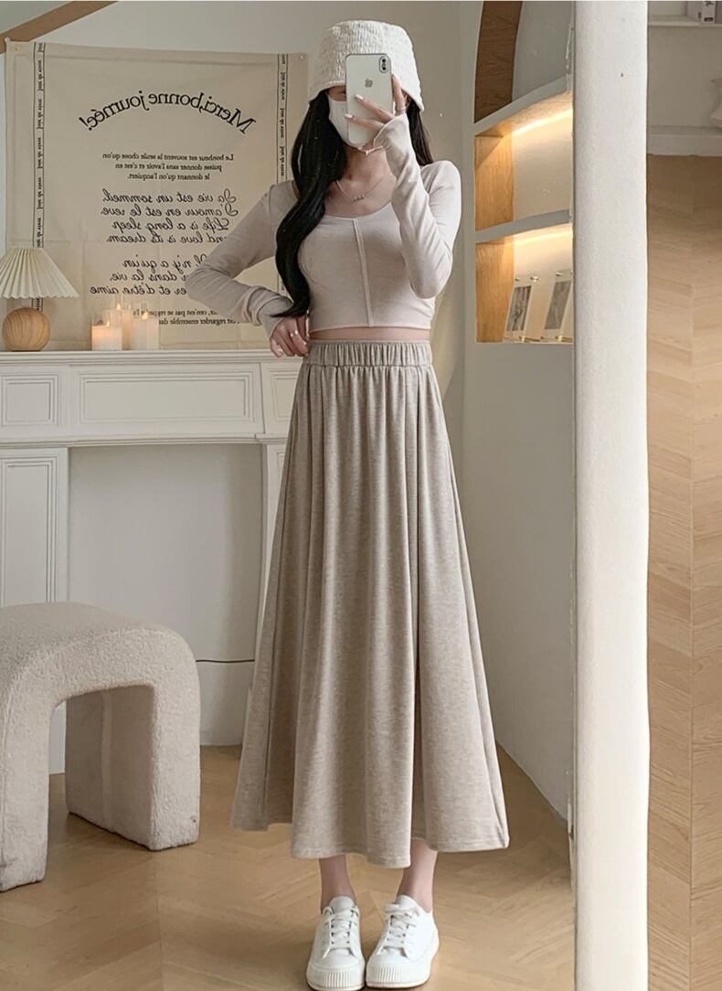 アンブレラスカート ミドル丈 スリム ニットスカート スカート ニットスカート ロング Aライン ウエストゴム 伸縮性 シンプル おしゃれ こなれ感 ラフ 無地 春 秋 レディース 通勤 お出かけ 休日 旅行 着回し 普段使い 楽ちん 送料無料 S M L XL ゆったり