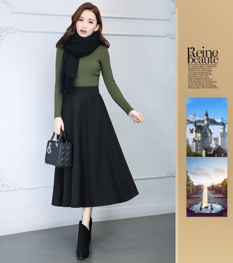 スカート ロングスカート フレアスカート ウール ウエストゴム Aライン フレア きれいめ 大人 上品 おしゃれ お洒落 エレガント フォーマル 無地 春 秋 冬 レディース お出かけ 休日 旅行 普段使い 暖かい プレゼント 定番 送料無料 S M L XL 2XL 3XL ブラック グレー ワインレッド