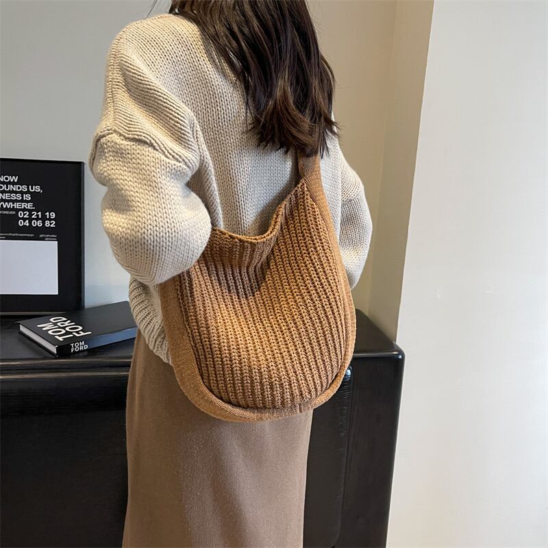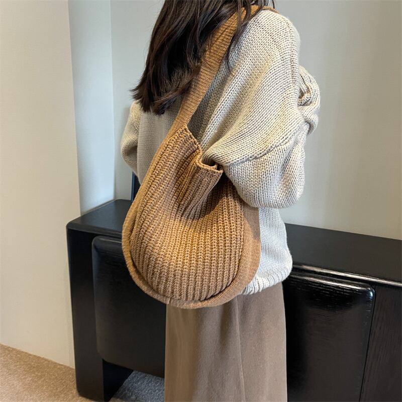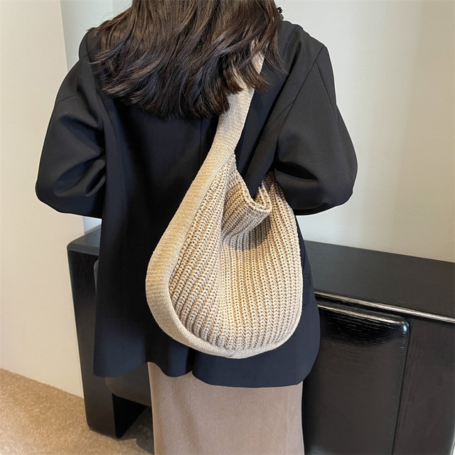 ニット編みトートバッグ バッグ レディースバッグ ショルダーバッグ トートバック 肩掛けバック 斜めがけ 肩がけ 柔らかい ニット シンプル カジュアル とろみ感 無地 レディース お出かけ 休日 お買い物 オールシーズン ブラック ブラウン オフホワイト カーキ