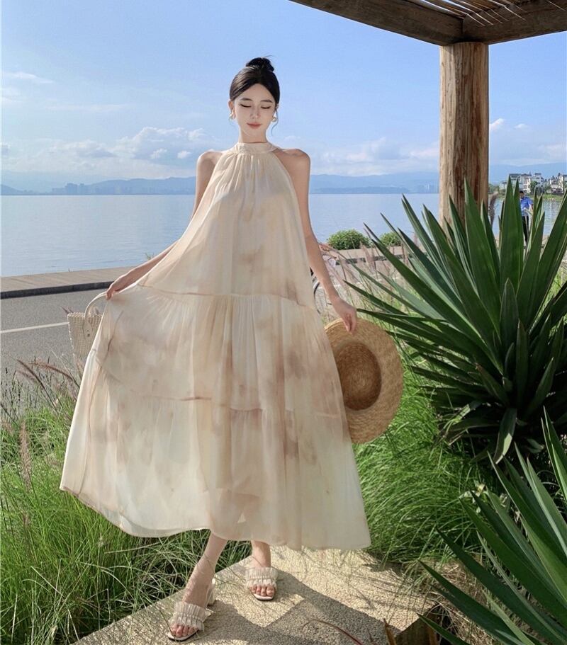 ワンピース ティアードワンピース ワンピドレス ロング マキシ丈 ノースリーブ Aライン シフォン バックリボン 薄手 きれいめ 大人 上品 おしゃれ お洒落 アジアン エレガント 存在感 夏 レディース お出かけ 休日 リゾート 旅行 海 プール 普段使い 楽ちん 体系カバー 送料無料 S M L