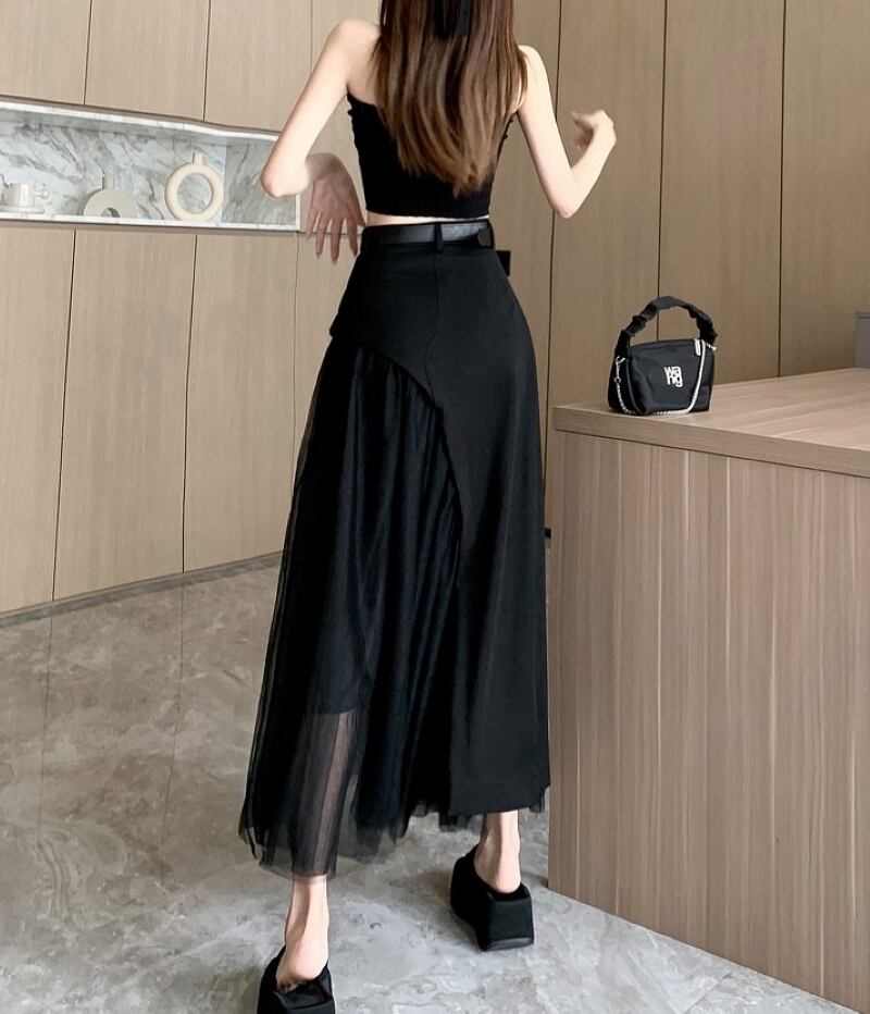 スプライシングメッシュスカートは、不規則なデザインと透け感が特徴のアイテムです。プリーツスカートやロング丈が流行する中、さらに一歩先を行く個性的なデザインは、あなたの着こなしを一気にオシャレなものにしてくれること間違いありません。