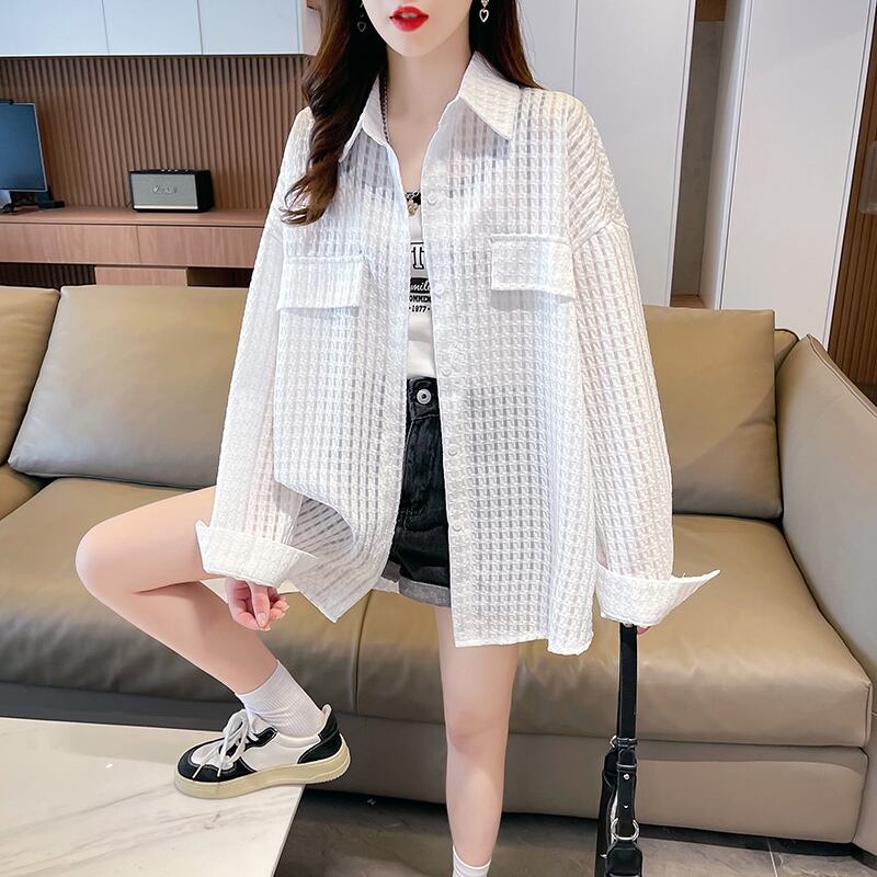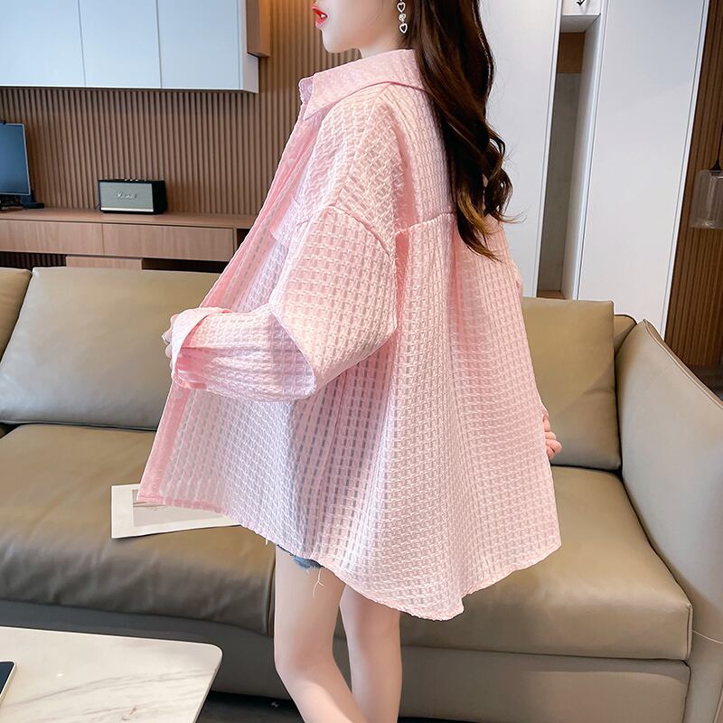 トップス アウター シャツ ブラウス ビッグシャツ 透け感 薄手 シンプル カジュアル ガーリー 存在感 柄 春 夏 秋 レディース お出かけ 休日 旅行 普段使い 韓国系 スタイル 体系カバー 送料無料 M L XL 2XL 大きめ ゆったり サイズ ホワイト グリーン ピンク
