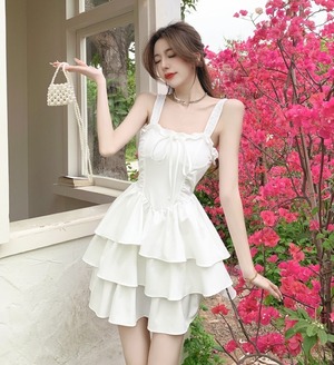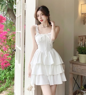 ワンピース ティアードワンピース ワンピドレス ショート丈 袖なし ホルターネック フレア ハイウエスト きれいめ 大人 上品 おしゃれ 大人女子 キュート 無地 春 夏 レディース お出かけ 休日 旅行 普段使い 韓国系 スタイル 脚長 送料無料 S M L ホワイト ブラック