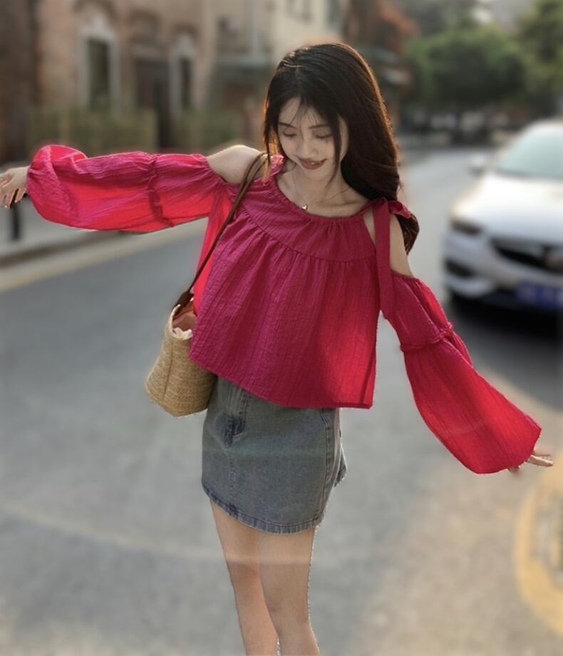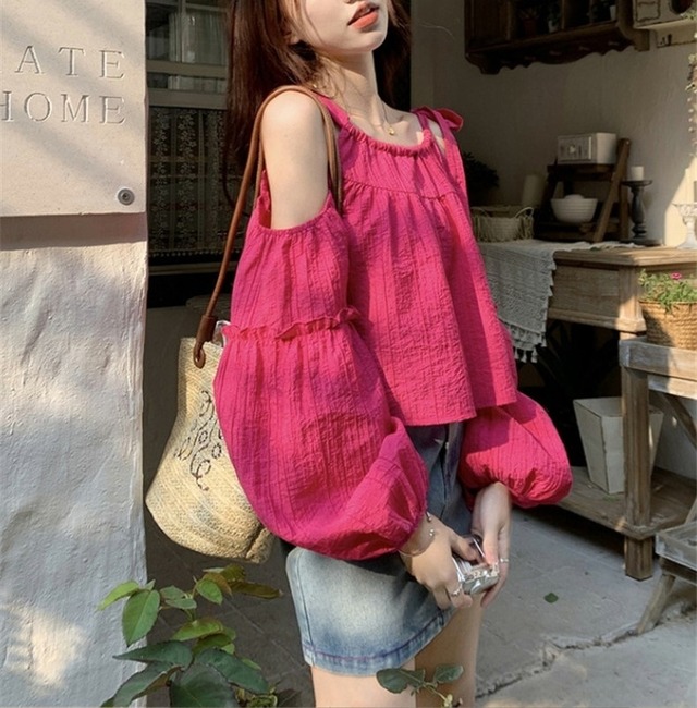 トップス シャツ カットソー パフスリーブ 肩出し オープンショルダー プルオーバー 大人可愛い おしゃれ ラブリー 存在感 無地 春 夏 秋 レディース デート お出かけ 休日 普段使い 韓国系 ファッション 送料無料 S M L XL 2XL