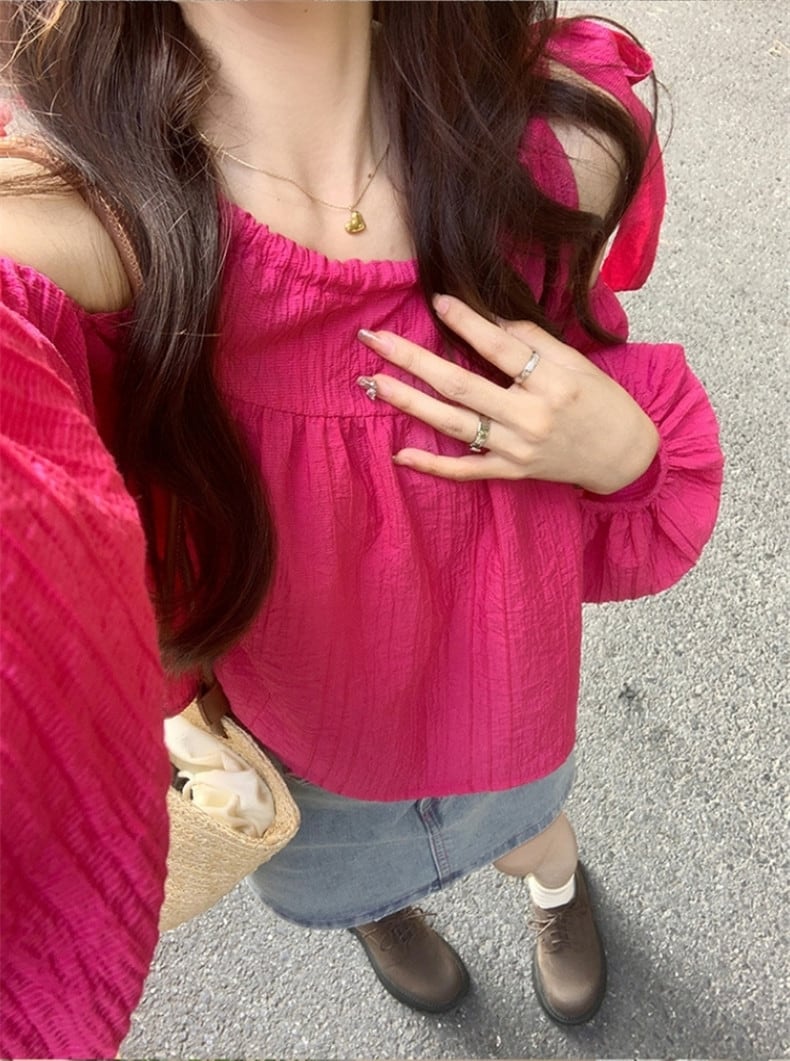 パフスリーブ 肩出し オープンショルダー プルオーバーは、トレンド感満載のアイテムです。大胆な肩出しデザインと可愛らしいパフスリーブがポイントで、女性らしい華やかさを演出してくれます。さらに、着心地も抜群の柔らかい素材感で、長時間着ていてもストレスを感じません。カジュアルなデニムとも相性抜群で、様々なコーディネートに取り入れやすいのも魅力です。