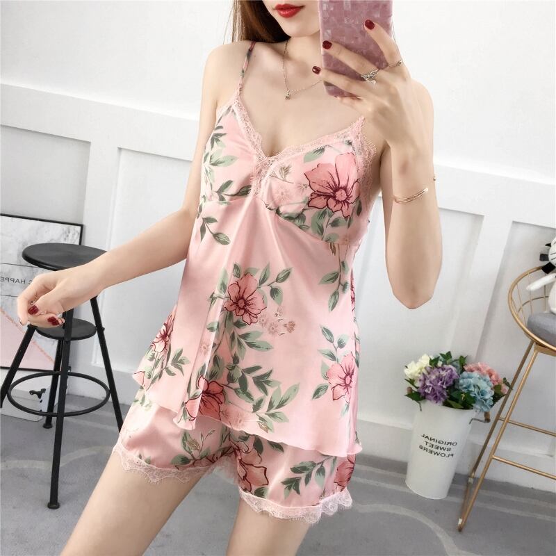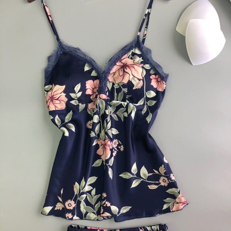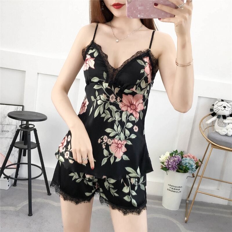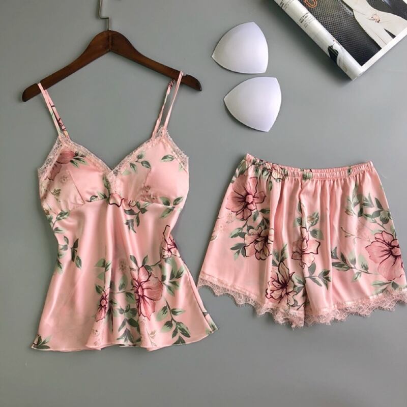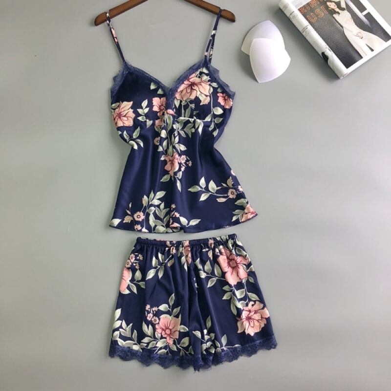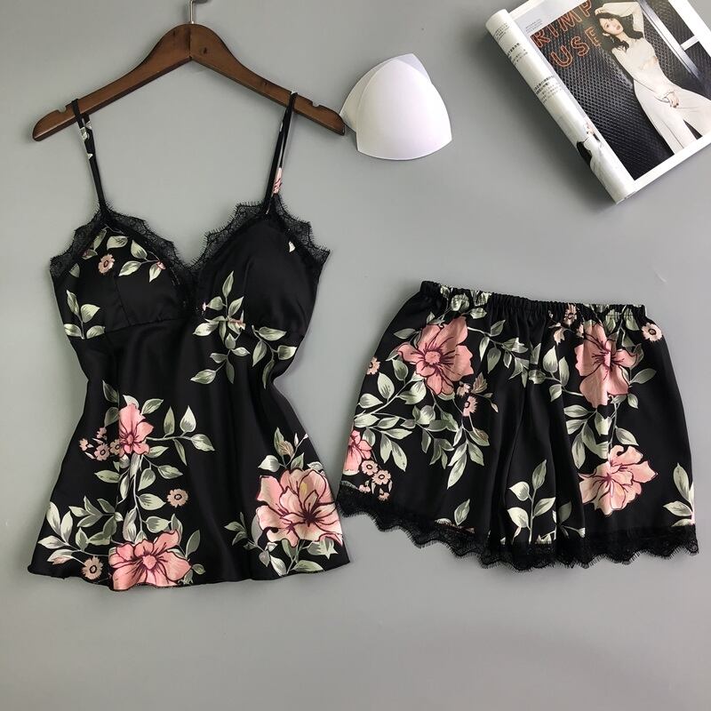 セットアップ ルームウェア パジャマ キャミソール ショートパンツ レディース 2点セット カップ付き ランジェリー ネグリジェ 部屋着 パジャマ 花柄 レース 大人 おしゃれ セクシー 春 夏 普段使い 楽ちん プレゼント 送料無料 M L XL 2XL ブラック ピンク ネイビー