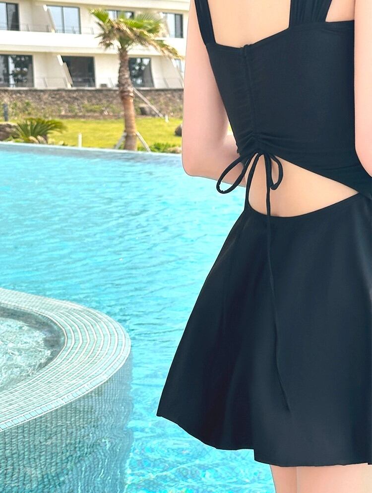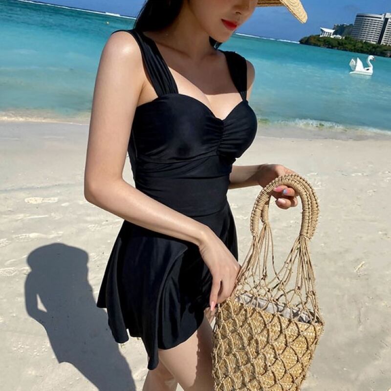 ワンピース水着 レディース 水着 ビーチウェア スイムウェア スカート水着 体系カバー水着 シンプル 大人 おしゃれ クール 無地 レディース 春 夏 海 ビーチ プール 旅行 着痩せ スタイルアップ 送料無料 M L XL 2XL 3XL ブラック