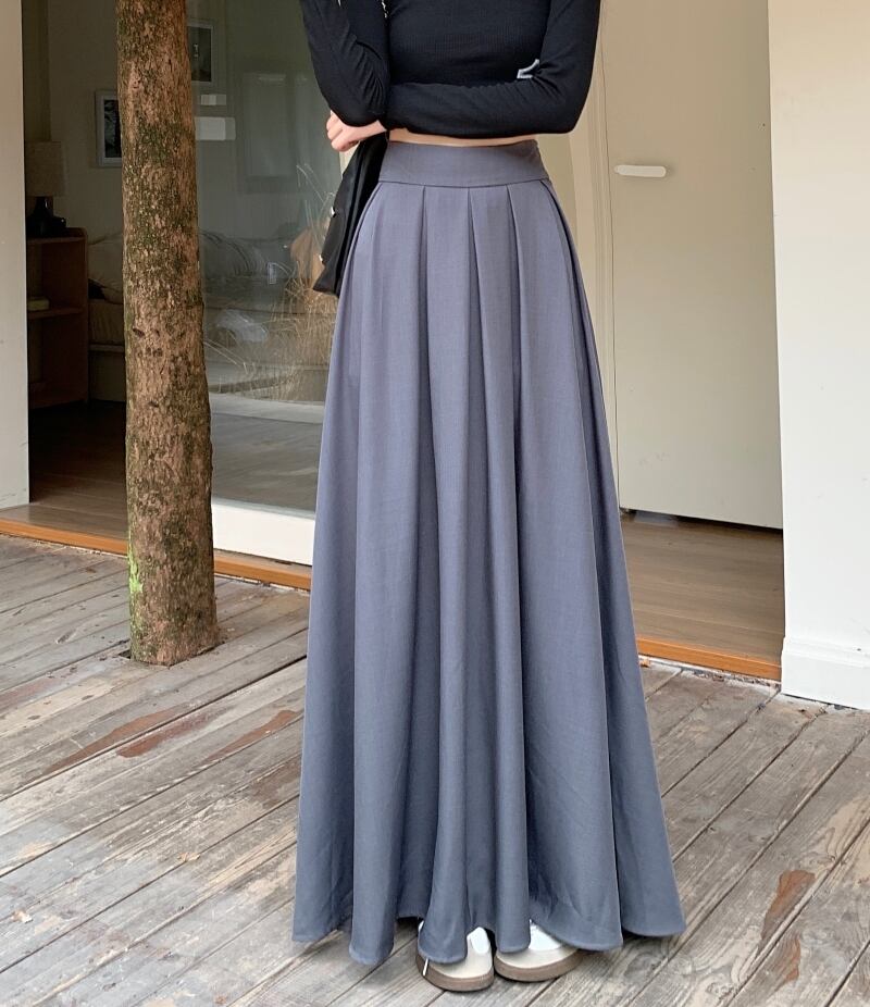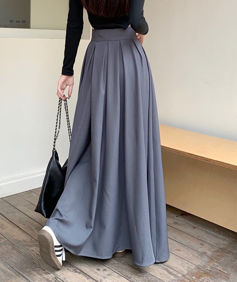 スカート ロングスカート プリーツスカート ロング マキシ丈 アンブレラスカート Aライン ハイウエスト シンプル 大人 おしゃれ 大人女子 存在感 無地 春 夏 秋 レディース デート お出かけ 女子会 休日 旅行 普段使い 韓国系 スタイル 送料無料 S M L XL 2XL ブラック グレー