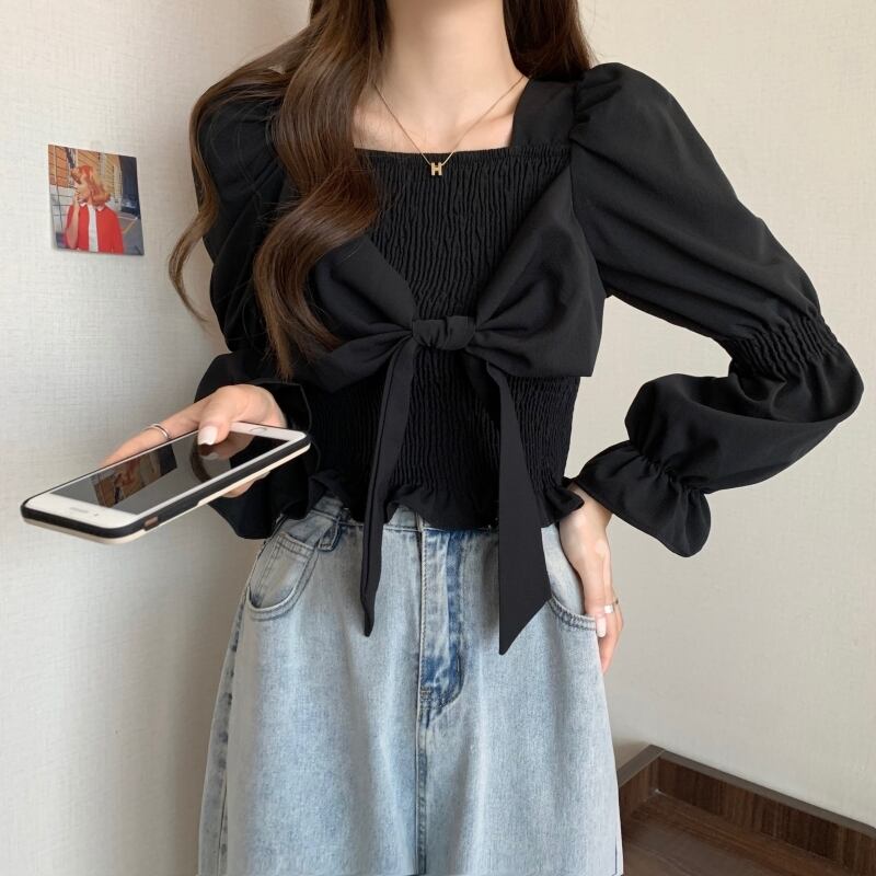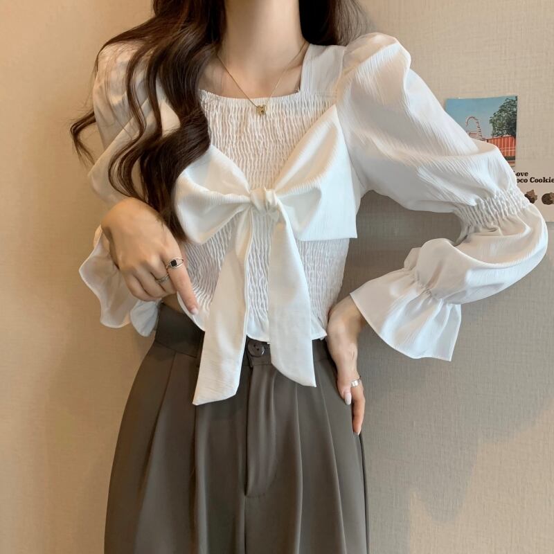 優雅で女性らしいデザインが魅力のパフスリーブブラウス。華やかなリボンデザインがアクセントになり、着るだけで女性らしい雰囲気を演出してくれます。シンプルながらも一枚で存在感を放ち、様々なコーディネートにマッチします。