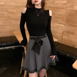 トップス ニットソー シャツ ハーフタートルネック インナーシャツ オープンショルダー 長袖 ニット 大人 上品 おしゃれ お洒落 セクシー 存在感 春 秋 冬 レディース デート お出かけ 休日 イベント 旅行 普段使い プレゼント 定番 送料無料 S M L XL ブラック