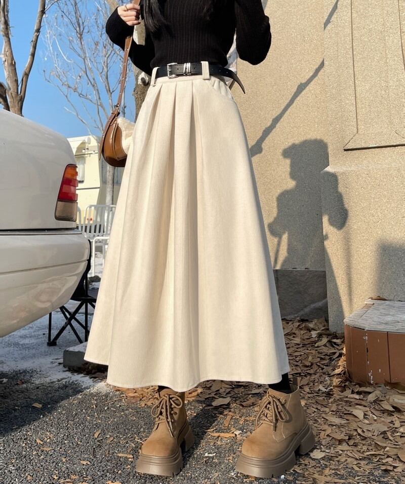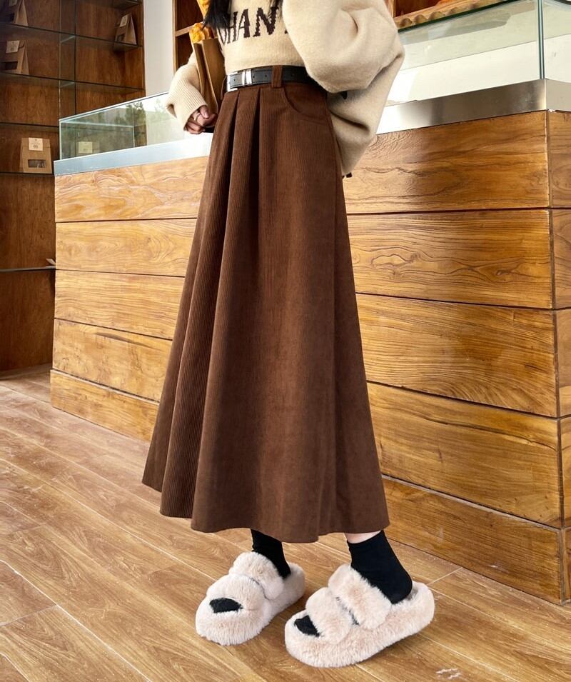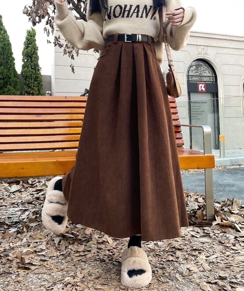 スカート ロングスカート フレアスカート ロング丈 コーデュロイスカート 秋冬 プリーツスカート Aライン ポケット ハイウエスト きれいめ シンプル 大人 おしゃれ 大人女子 とろみ感 無地 秋 冬 レディース デート お出かけ 休日 旅行 普段使い 楽ちん 脚長 定番 送料無料 S M L XL ブラック ブラウン アプリコット