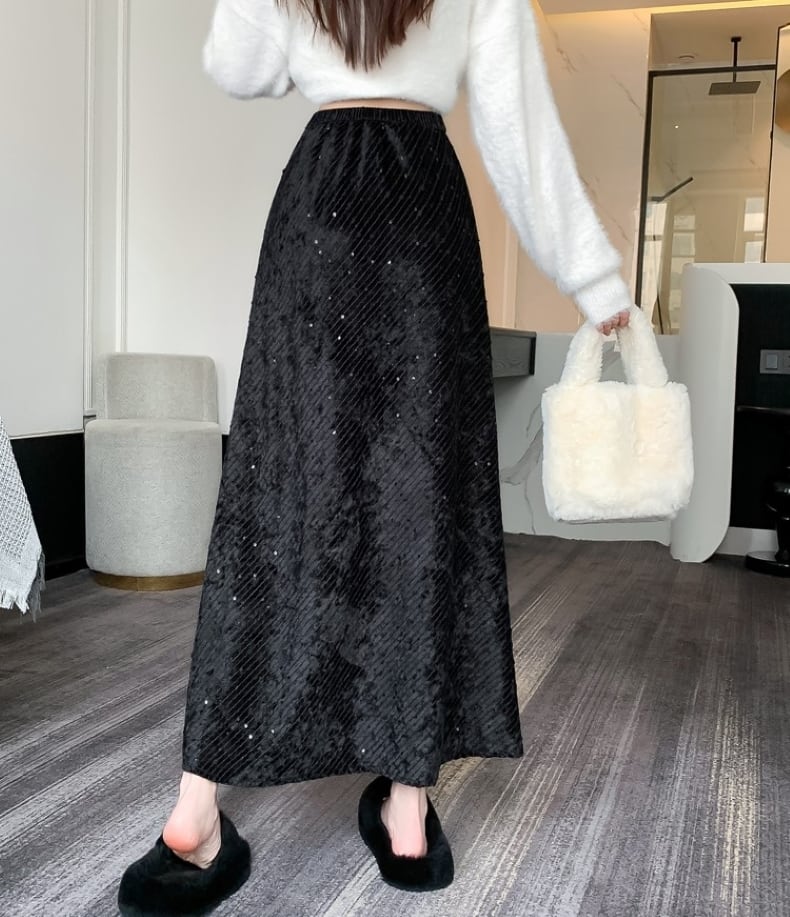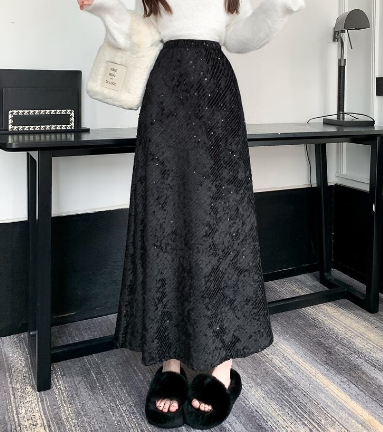 スカート ロングスカート プリーツスカート ロング マキシ丈 スパンコール A ライン アンブレラ スカート プリーツ ハイウエスト ウエストゴム きれいめ 大人 おしゃれ 大人女子 エレガント 存在感 春 秋 冬 レディース デート お出かけ 女子会 休日 旅行 普段使い 韓国系 スタイル 楽ちん 体系カバー 送料無料 S M L XL ブラック アプリコット