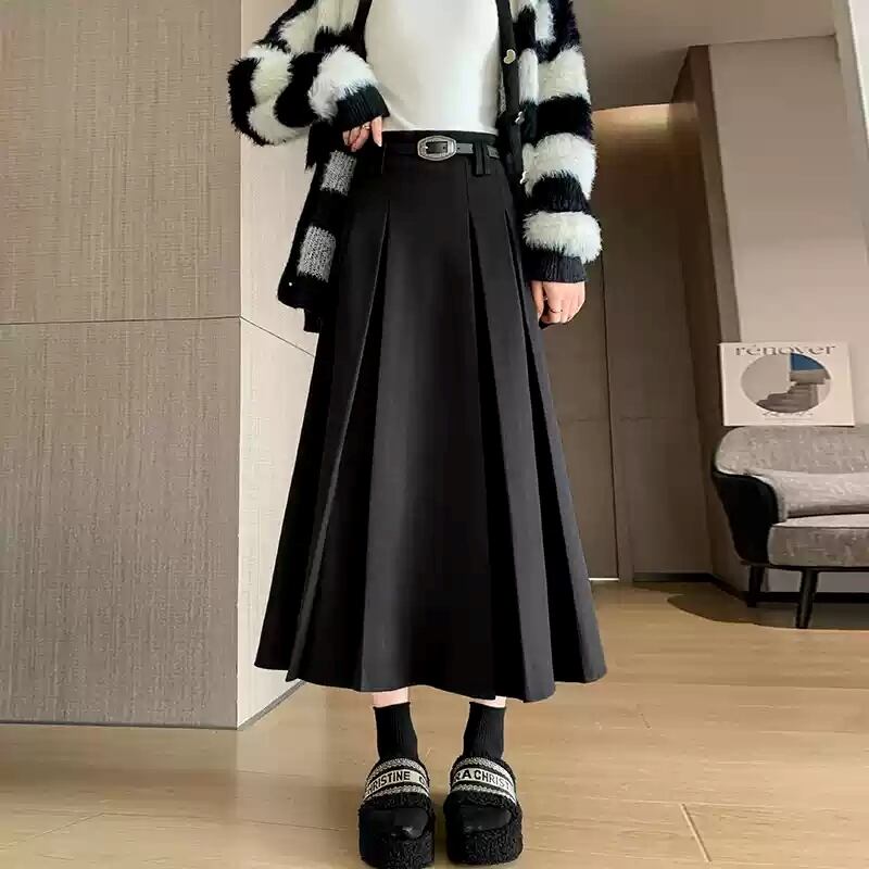 スカート ロングスカート プリーツスカート ミモレ丈 ロング Aライン プリーツ ハイウエスト ベルト付 綿 ポリエステル シンプル 大人 おしゃれ 大人女子 エレガント フォーマル 無地 春 秋 冬 レディース 通勤 デート 休日 旅行 普段使い 脚長 プレゼント 送料無料 S M L XL 2XL ブラック ブラウン グレー