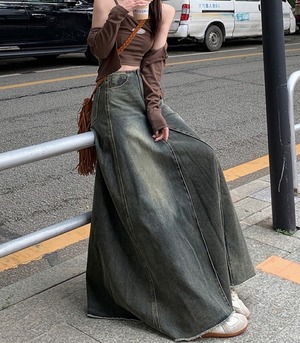 スカート ロングスカート デニムスカート ロング アンクル丈 A ライン フィッシュテール フリンジデニムスカート 大人 おしゃれ かっこいい レトロ 大人女子 クール 存在感 春 秋 冬 レディース デート お出かけ 女子会 休日 旅行 普段使い 脚長 プレゼント 定番 送料無料 S M L XL