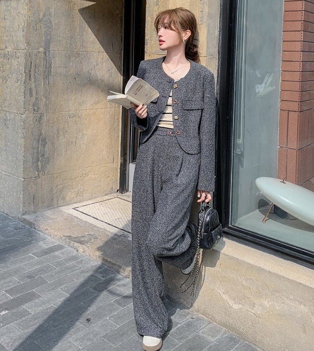 パンツスーツ セットアップ レディース ワイドパンツ ジャケット 2点セット ウエストゴム ポリエステル 上下セット ツーピース シンプル 大人 おしゃれ クール フォーマル 春 秋 冬 入学式 入園式 卒業式 卒園式 通勤 お出かけ 休日 旅行 普段使い 送料無料 S L XL グレー
