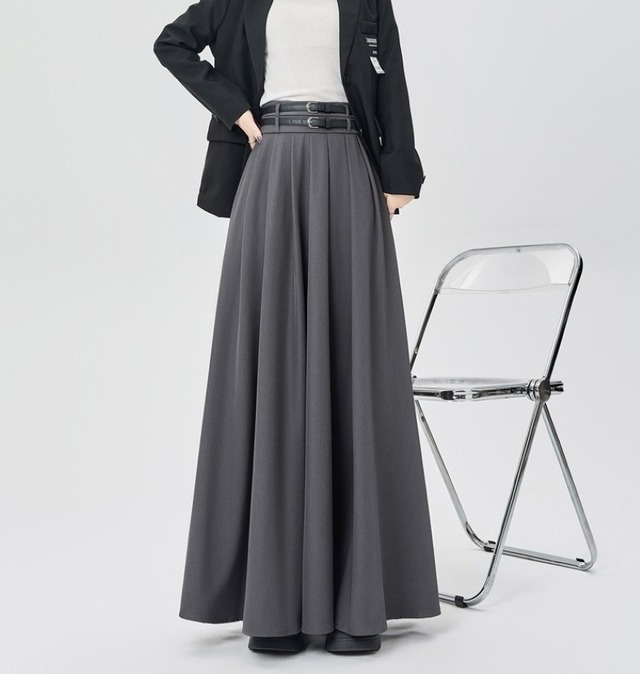 レディース マキシスカート ロング ロングスカート スカート ハイウエストボリュームフレアスカート プリーツ ベルト ハイウエスト きれいめ 大人 おしゃれ クール 無地 春 秋 通勤 お出かけ 休日 旅行 普段使い 韓国系 スタイル 美脚 プレゼント 定番 送料無料 S M L XL ブラック ブラウン グレー