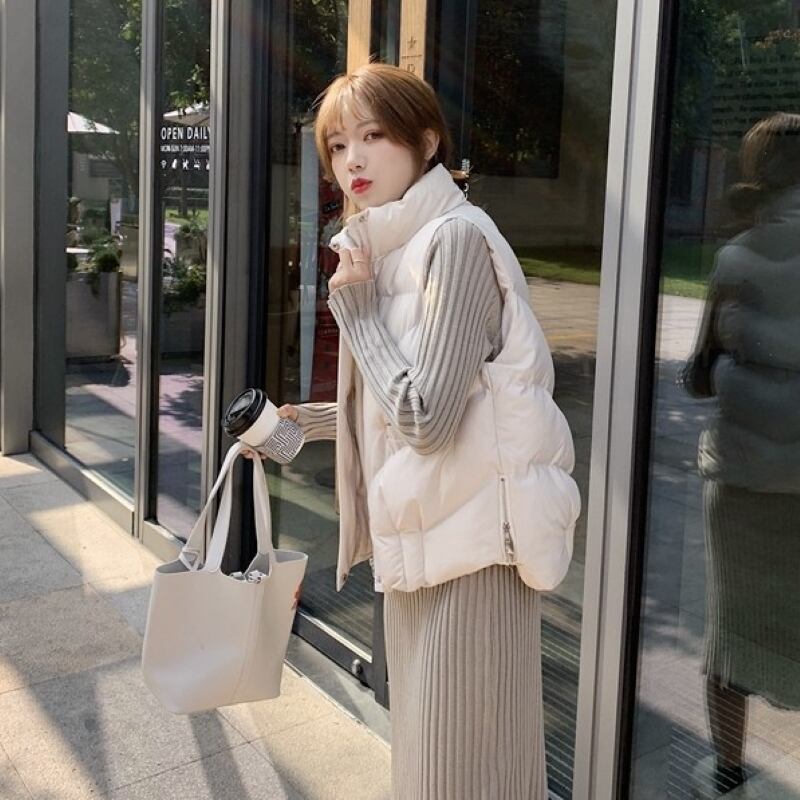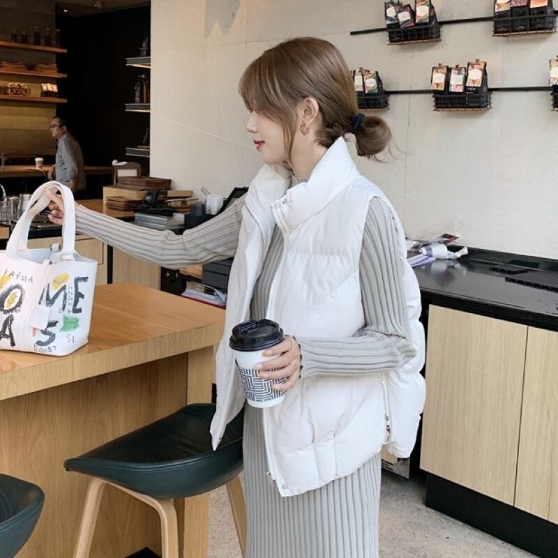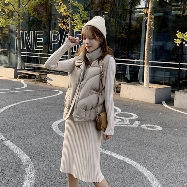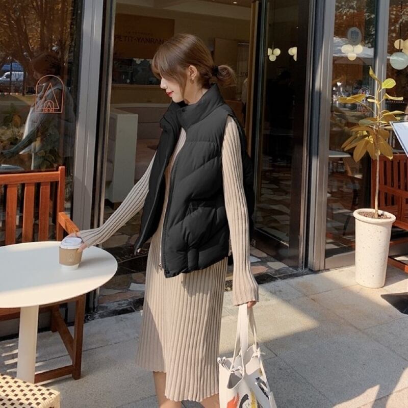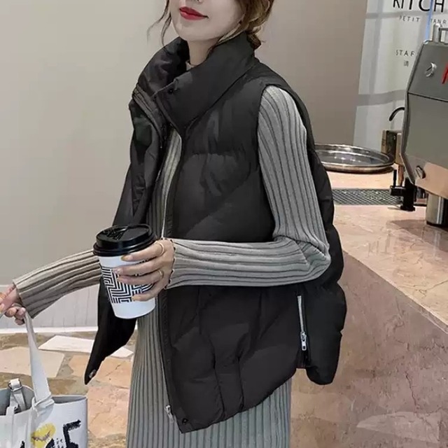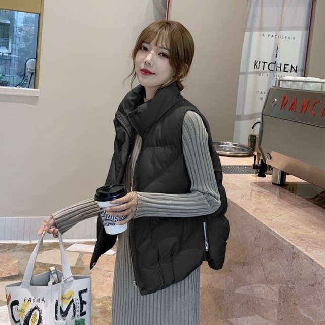 アウター ベスト ジャケット 上着 ダウン レディース ダウンベスト フェイクダウン 防寒 ショート丈 ポケット 前開き 厚手 シンプル カジュアル 大人 おしゃれ とろみ感 秋 冬 お出かけ 休日 普段使い 重ね着 暖かい 体系カバー 送料無料 S M L XL 2XL ブラック ベージュ カーキ