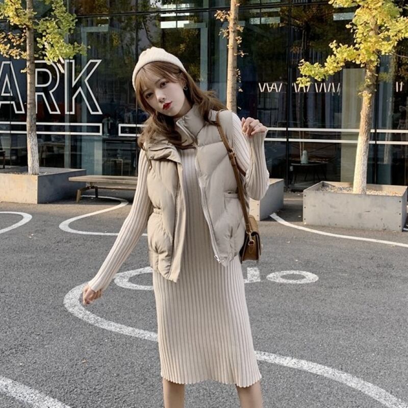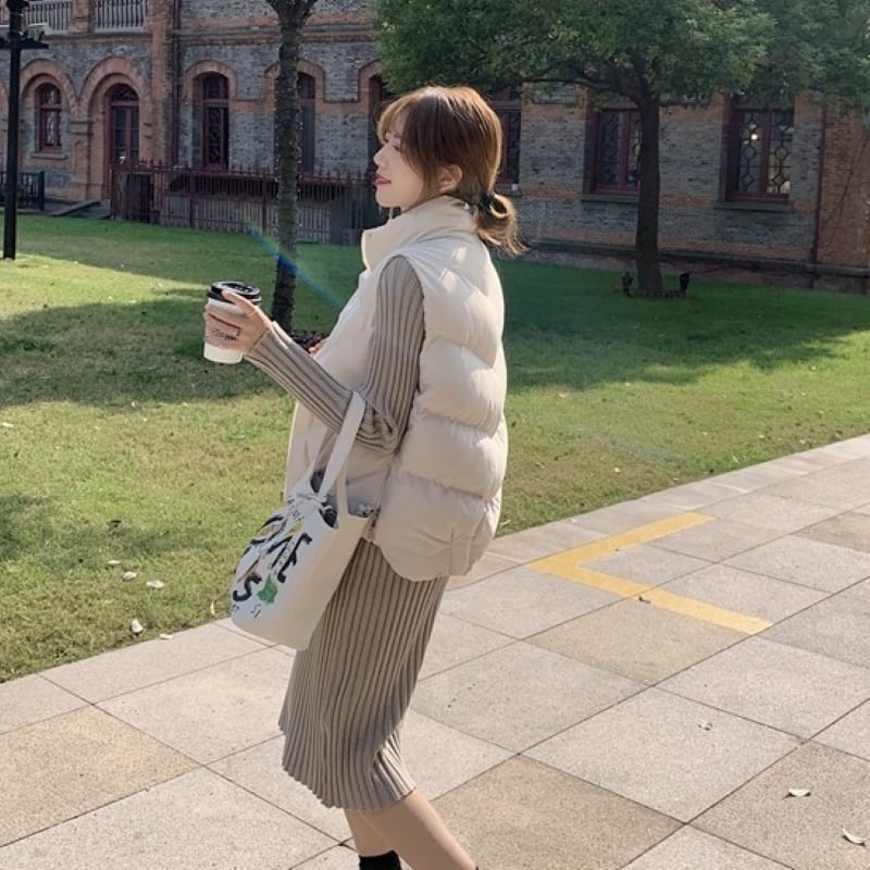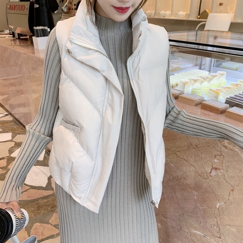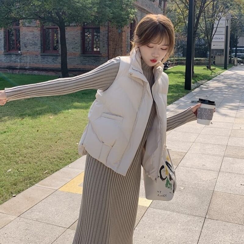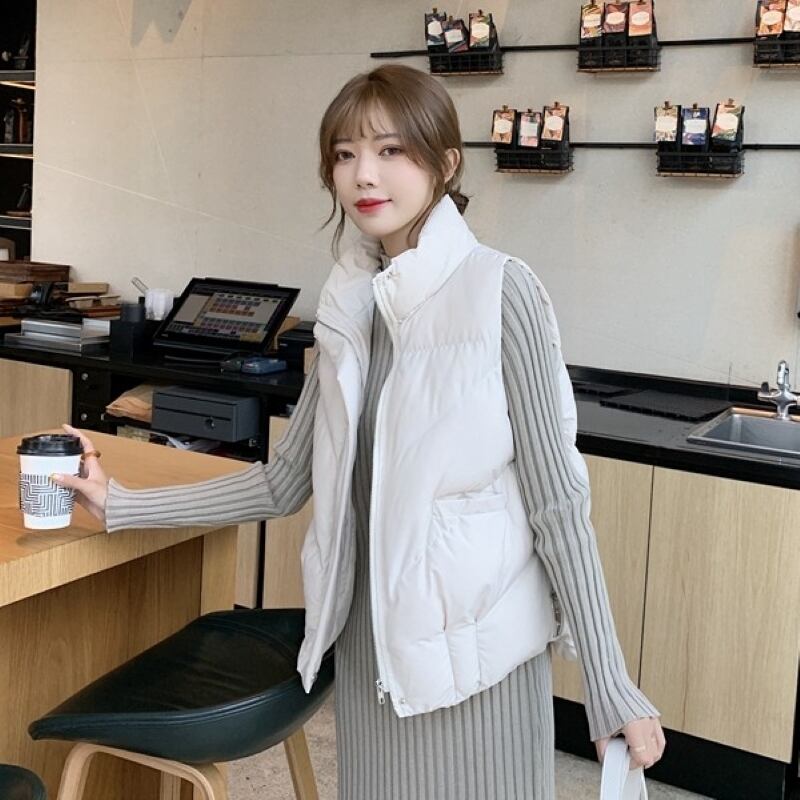 アウター ベスト ジャケット 上着 ダウン レディース ダウンベスト フェイクダウン 防寒 ショート丈 ポケット 前開き 厚手 シンプル カジュアル 大人 おしゃれ とろみ感 秋 冬 お出かけ 休日 普段使い 重ね着 暖かい 体系カバー 送料無料 S M L XL 2XL ブラック ベージュ カーキ